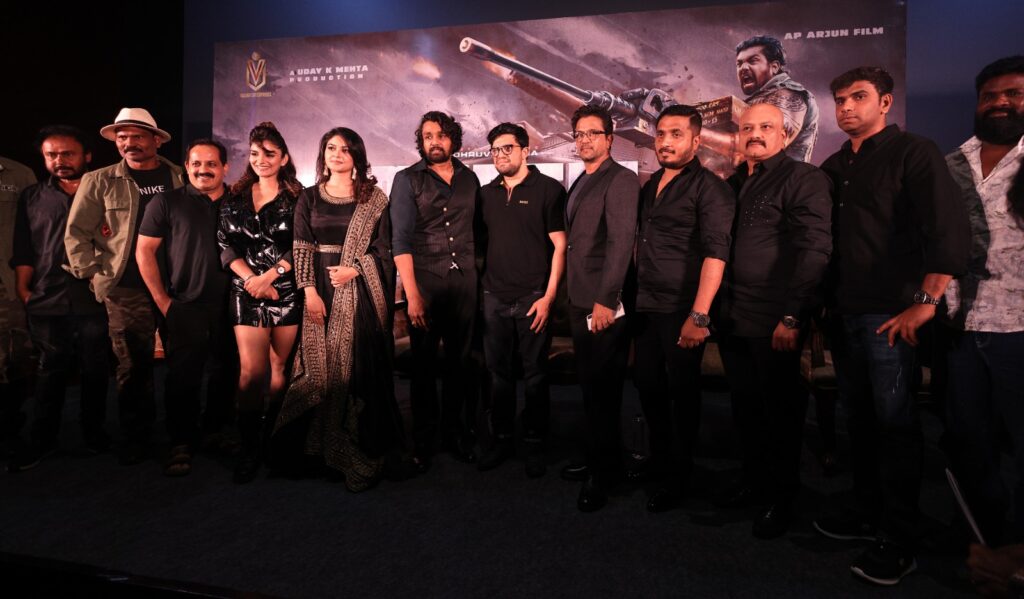 இவ்விழாவினில், தயாரிப்பாளர் உதய் K மேத்தா, ஆக்சன் கிங் அர்ஜீன், இயக்குநர் AP அர்ஜீ ன், நாயகன் துருவா சர்ஜா, நாயகி வைபவி சாண்டில்யா, அன்வேஷி ஜெயின் உட்பட பட க் குழுவினர் கலந்துகொண்டனர்.