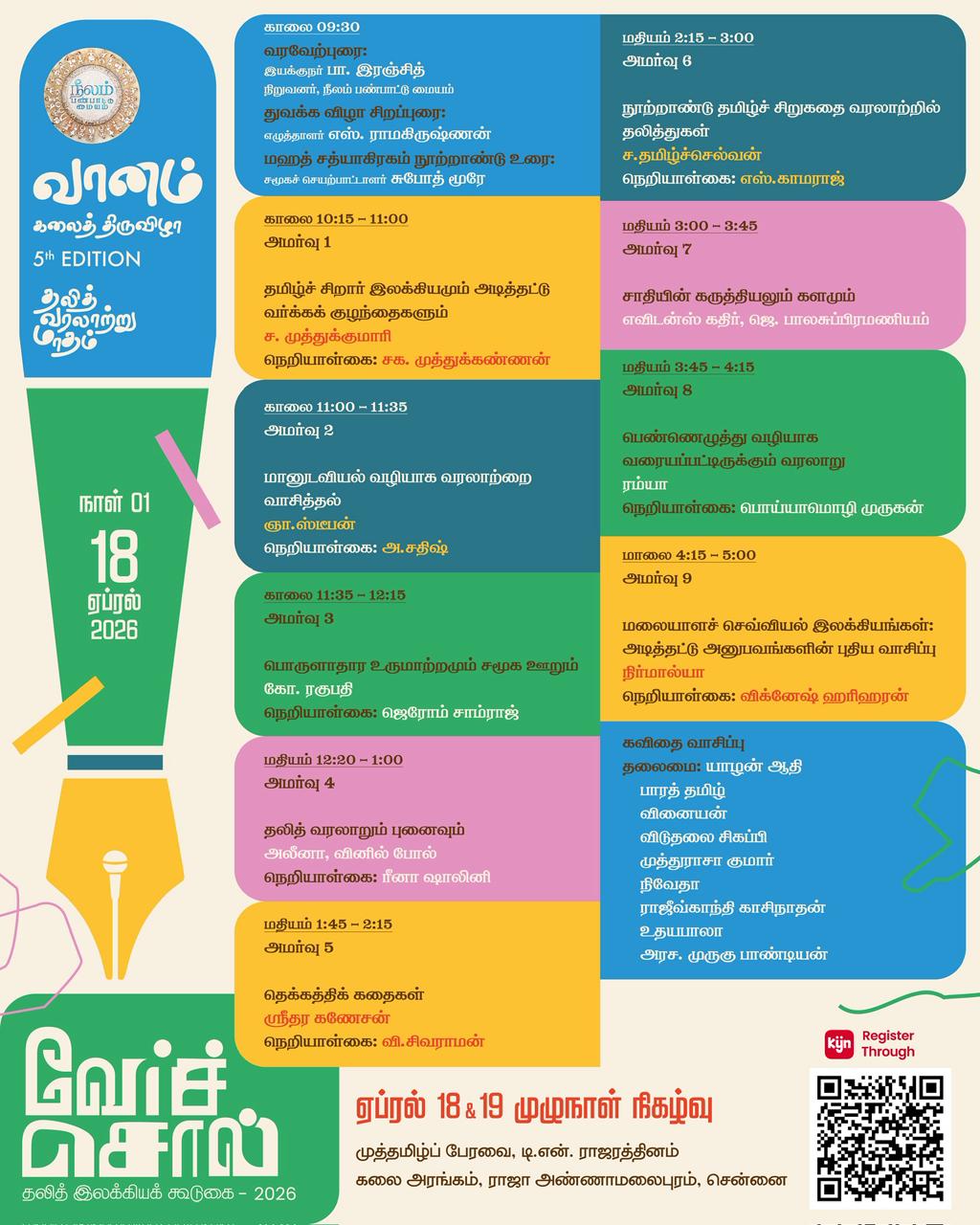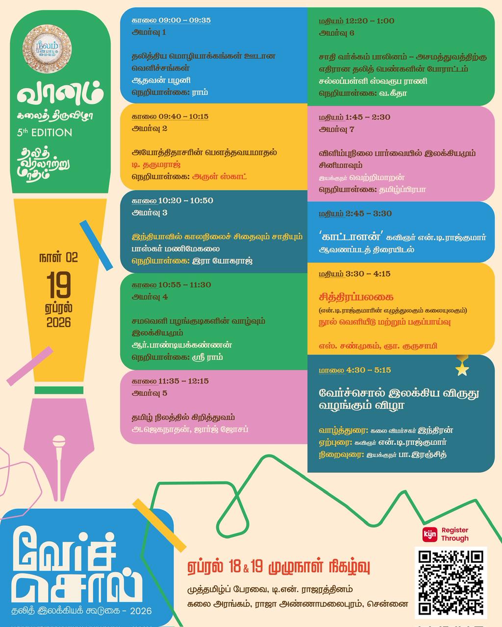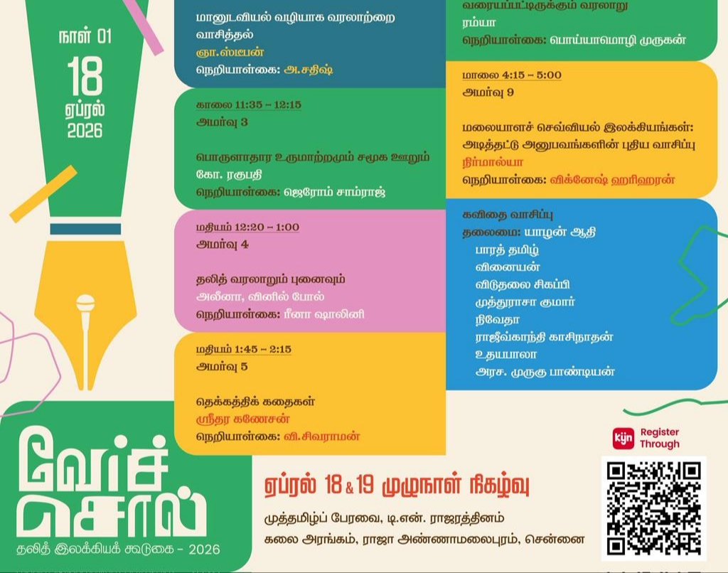 ‘வேர்ச்சொல் – தலித் இலக்கியக் கூடுகை’ மற்றும் இலக்கிய விருது வழங்கும் விழா ஏப்ரல் 18 & 19 தேதிகளில் சென்னையில் முழுநாள் நிகழ்வாக நடக்க இருக்கிறது. இலக்கியம், சமூக அரசியல், சினிமா எனப் பல்வேறு அமர்வுகளில் முக்கியமான எழுத்தாளர்கள், கலைஞர்கள், விமர்சகர்கள், தமிழ் இலக்கிய ஆர்வலர்கள் எனப் பல தரப்பினர் கலந்துகொள்கிறார்கள்.🖍🌸🎉📚