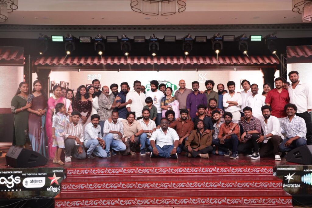 நிகழ்வில் கலந்து கொண்ட சிவகார்த்திகேயன் புரொடக்ஷன்ஸ் கலை, “நல்ல கதைகள் தயாரிக்க வேண்டும் என்ற நோக்கத்தோடு சிவகார்த்திகேயன் புரொடக்ஷன்ஸ் இயங்கி வருகிறது. இது எங்கள் தயாரிப்பில் ஒன்பதாவது படம். இந்தப் படத்தின் இயக்குநர் மற்றும் கதை மீது சிவகார்த்திகேயன் வைத்த நம்பிக்கையில் இருந்துதான் படம் தொடங்கியது. பேஷன் ஸ்டுடியோஸ் உடன் இணைந்து தயாரித்திருக்கிறோம். படத்தின் ரஃப் கட் பார்த்துவிட்டு எங்கள் அணியை சிவா பாராட்டினார். சிவகுமார் எவ்வளவு திறமையான இயக்குநர் என்பது இந்தப் படத்தின் மூலமும், அவருக்கு அடுத்து கிடைத்திருக்கும் வாய்ப்பை பார்க்கும்போதும் தெரியும். ராதிகா மேம் எங்களுக்கு மிகுந்த ஒத்துழைப்பு கொடுத்து நடித்தார். படக்குழுவினர் அனைவருக்கும் நன்றி. 27 ஆம் தேதி படம் திரையரங்குகளில் வெளியாகிறது. உங்கள் அனைவரின் ஆதரவும் தேவை”.