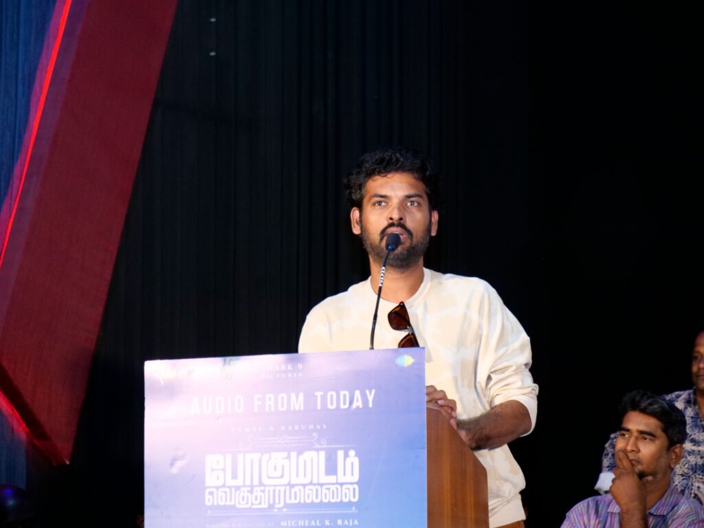 போகுமிடம் வெகு தூரமில்லை தயாரிப்பாளருக்கு முதல் நன்றி. நல்ல கதைகளைத் தொடர்ந்து செய்வேன் எனச் சொன்ன அவர் மனதிற்கு நன்றி. படத்தின் நாயகன் விமல் எனக்கு நெருங்கிய நண்பர், விலங்கு மூலம் மீண்டும் ஒரு எதிர்பார்ப்பை ஏற்படுத்தியுள்ளார். நல்ல கதைகளைத் தேர்ந்தெடுத்து நடிக்கிறார் என்கிற எதிர்பார்ப்பை உருவாக்கியுள்ளார். அவர் அடுத்தடுத்த படங்கள் நல்ல எதிர்பார்ப்பில் உள்ளது. இந்தப்படம் மிக எதார்த்தமாக இருக்கிறது எல்லோருக்கும் பிடித்த படமாக இது இருக்கும். மைக்கேல் பற்றி அனைவரும் பேசும்போதே அவரது திறமை தெரிகிறது வாழ்த்துக்கள். கருணாஸ் அண்ணன் உடன் ஏதாவது ஒரு படத்தில் வேலை பார்க்க ஆசை அது தள்ளிப்போய்க் கொண்டிருக்கிறது. அவரது கெட்டப்பே வித்தியாசமாக இருக்கிறது. அவருக்கும் இப்படம் பெயர் சொல்லும் படமாக இருக்கும். ரகுநந்தன் இளையராஜா போல தமிழ் மக்கள் மனதில் இடம்பிடித்திருக்கிறார். அவருக்கும் என் வாழ்த்துக்கள். அனைவருக்கும் வாழ்த்துக்கள். படம் சிறப்பாக உள்ளது. படத்திற்குப் பத்திரிக்கையாளர்கள் ஆதரவு தாருங்கள் நன்றி.