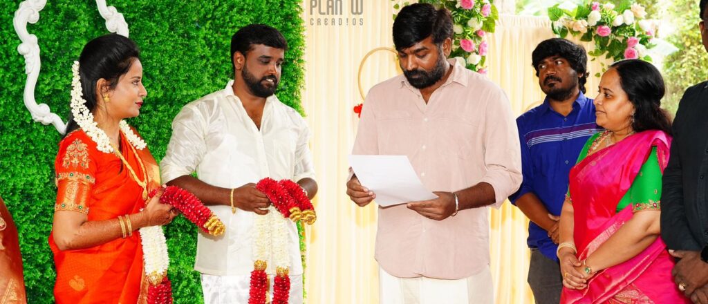 இந்த திருமணம் இரு வீட்டார் சம்மதத்துடன் சுற்றம் சூழ, நண்பர்கள் கலந்துகொள்ள, மக் கள் செல்வன் விஜய் சேதுபதி முன்னிலையில் கோலகலமாக நடைபெற்றது. மக்கள் செல் வன் விஜய் சேதுபதி மணமக்களை ஆசிர்வதித்து வாழ்த்தினார்.