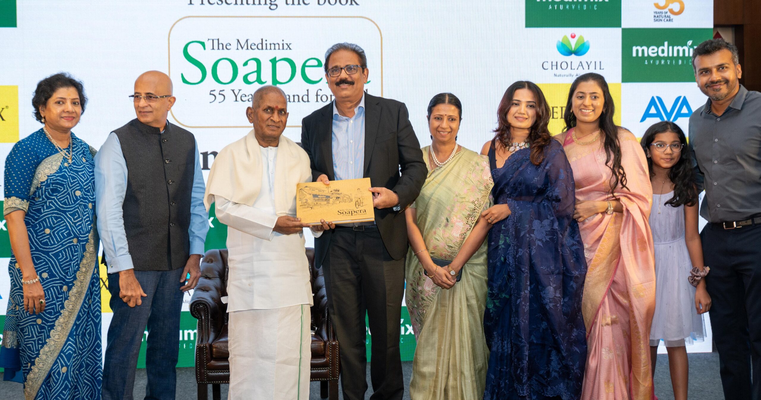 Chennai, 17th July 2024: Bringing toget her the healing powers of Ayurveda an d Music, Medimix Family unveiled Soa pera, an exclusive coffee table book ca pturing the 55 years journey of the bra nd Medimix – India’s leading ayurvedic personal care brand. The first copy of the book was presented to Maestro Ilai yaraaja by Dr. A V Anoop, Managing Di rector, AVA Cholayil Healthcare Pvt Lt d, and Mr.V.S.Pradeep .Managing Dire ctor Cholayil during a private event h eld in the city. Soapera is an exquisite coffee table book, curated by the mak ers of Medimix, that captures the illus trious history and the 55 year old tran sformative journey of Medimix. The b ook encapsulates the inspiring jour n ey of Dr VP Sidhan’s quest to unlock t he power of ayurvedaayurveda.