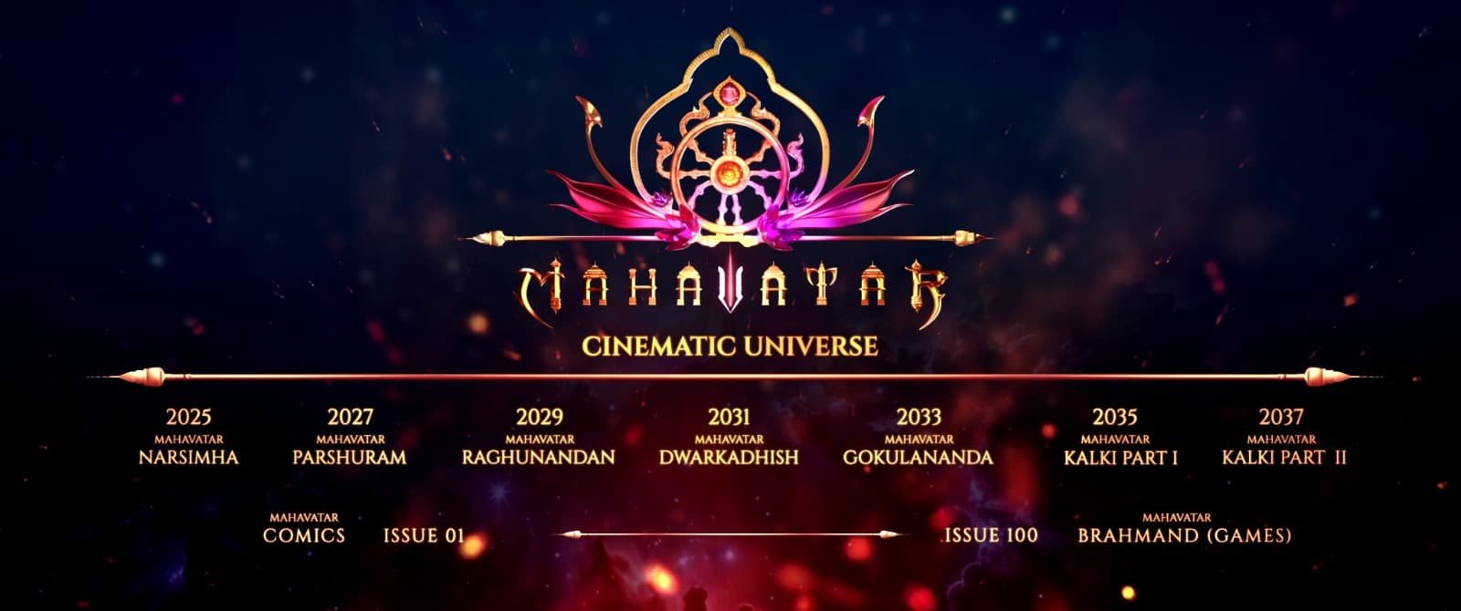 Hombale Films presents and Kleem Productions have officially unveiled the lineup for their ambitious animated franchise, the Mahavatar Cinematic Universe. Spanning over a decade, the series will chronicle the ten divine avatars of Lord Vishnu, starting with Mahavatar Narsimha in 2025 and culminating with Mahavatar Kalki Part 2 in 2037.