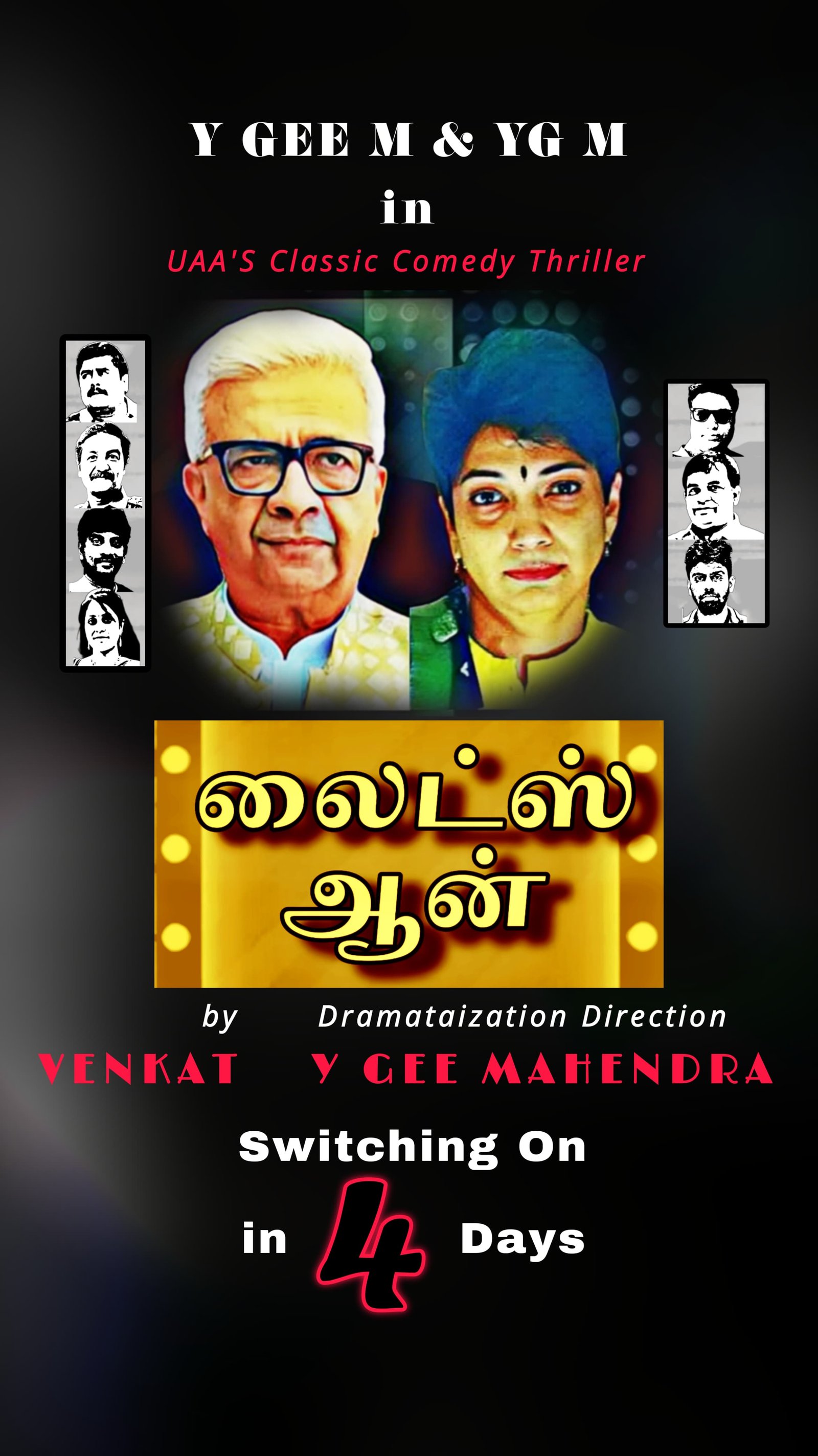 Story Inspiration ..Gollapudi Maruti Rao , Written by…..Venkat, Dramatised Direc ted By YGEE MAHENDRA, Lights& Mus ic….Kalai Ravi, Scenes ….Saidai Ku mar, P RODUCER PANJUM ON…YGEEM and others.