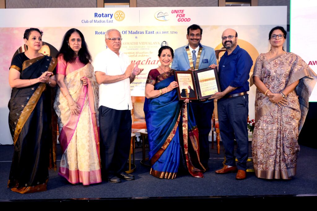 Instituted in 2008, the Dronacharya Award by the Rotary Club of Madras East honours exemplary teachers and mentors who inspire, guide, and shape generations of learners. Drawing inspiration from the legendary Guru Dronacharya of the Mahābhārata, this award celebrates the enduring bond between teacher and disciple and the transformative power of education. Sponsored by Saraswathi Vidyalaya Senior Secondary School, the award has, over the years, recognised outstanding educators who have made a lasting impact on society.