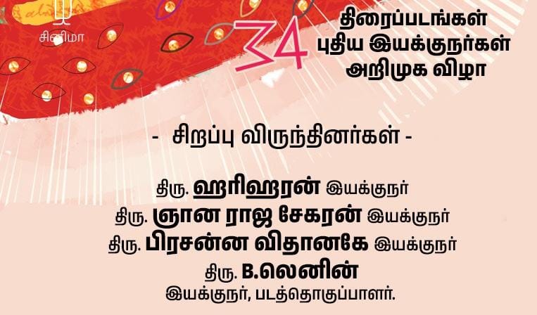 Cinematographers P.C. Sreeram and Ravi Varman; editors B. Lenin and Sreekar Prasad; directors K. Hariharan and Prasanna Vithanage; and prominent figures including Trotsky Marudhu, the chairman of the Tamil Nadu Government MGR Film Institute, are expected to attend this event.