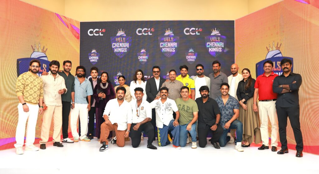 Several prominent personalities attended the grand launch event of the Vels Chennai Kings team held today in Chennai. Among them were Dr. Ishari K. Ganesh, Founder Chancellor of Vels University and Chairman of the Vels Group; actress-producer Mrs. Sripriya Rajkumar; cricketers Lakshmipathiy Balaji and Murali Vijay; Vishnu Induri, founder of the Celebrity Cricket League; actor Sarathkumar; actress Radikaa Sarathkumar; actress Meena; Kushmita Ganesh, Vice President of Vels Group of Companies; Nagarjuna Sethupathi, son of the Sripriya Rajkumar–Rajkumar Sethupathi couple; Member of Parliament and Bhojpuri team captain Manoj Tiwari; Boney Kapoor and Raj Shah, owners of the Bengal team; Puneet Singh and Navraj Hans, owners of the Punjab team; Unni Mukundan, captain of the Kerala team; Sachin Joshi, captain of the Telugu team; and Thaman, leading player of the Telugu team and renowned music composer.