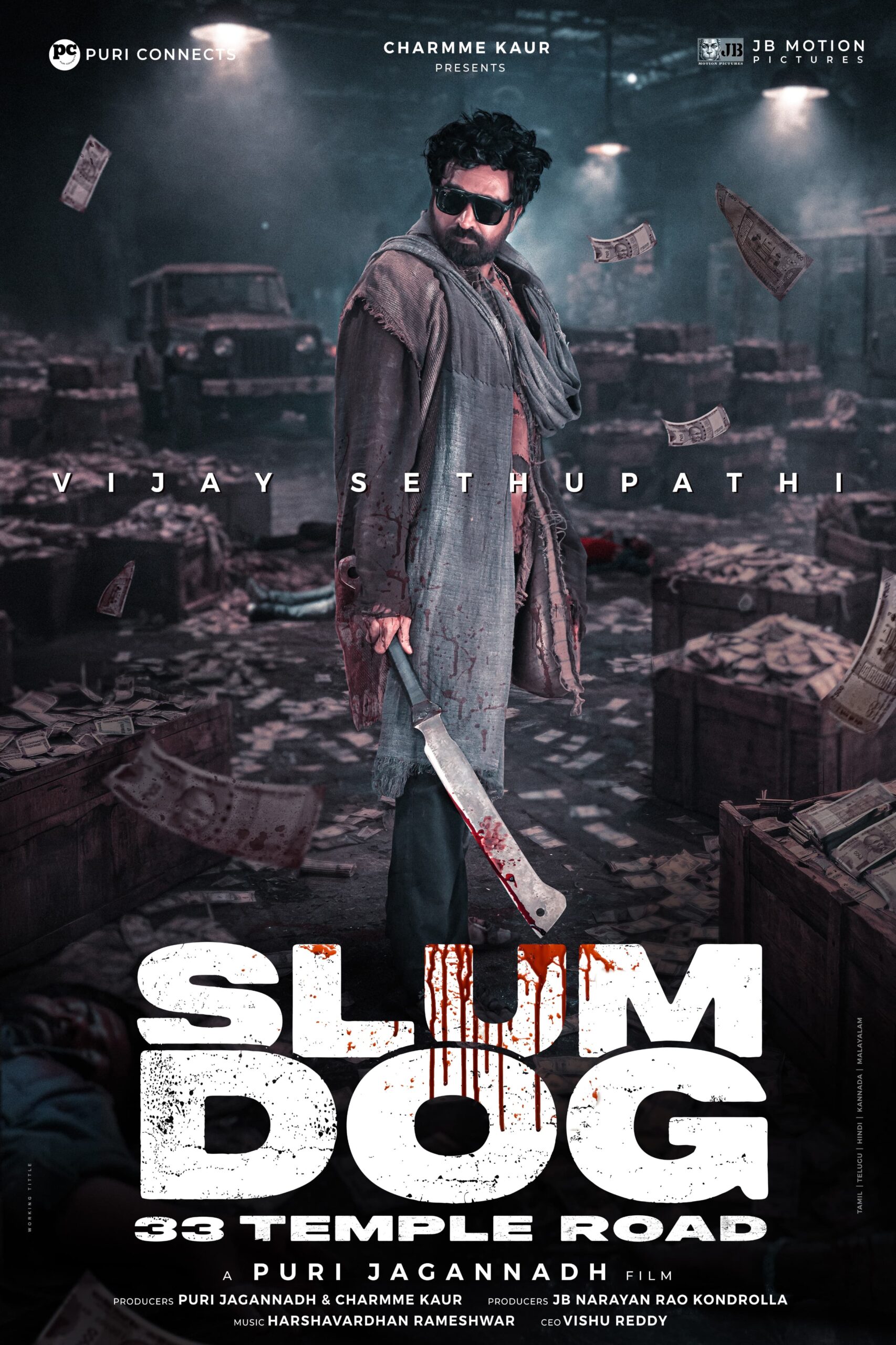 On the occasion of Vijay Sethupathi’s birthday, the makers unveiled the film’s title and first-look poster. Titled powerfully Slum Dog, with the tagline- 33 Temple Road, the first look poster features Vijay Sethupathi in a wild avatar, with disheveled hair and beard framing his intense look, donning a beggar’s outfit with a flowing scarf and boots, as he grips a massive sickle raised high amid stacks of cash fluttering chaotically in a dimly lit, fog-shrouded slum. The title and first look certainly build massive hype for this action entertainer.