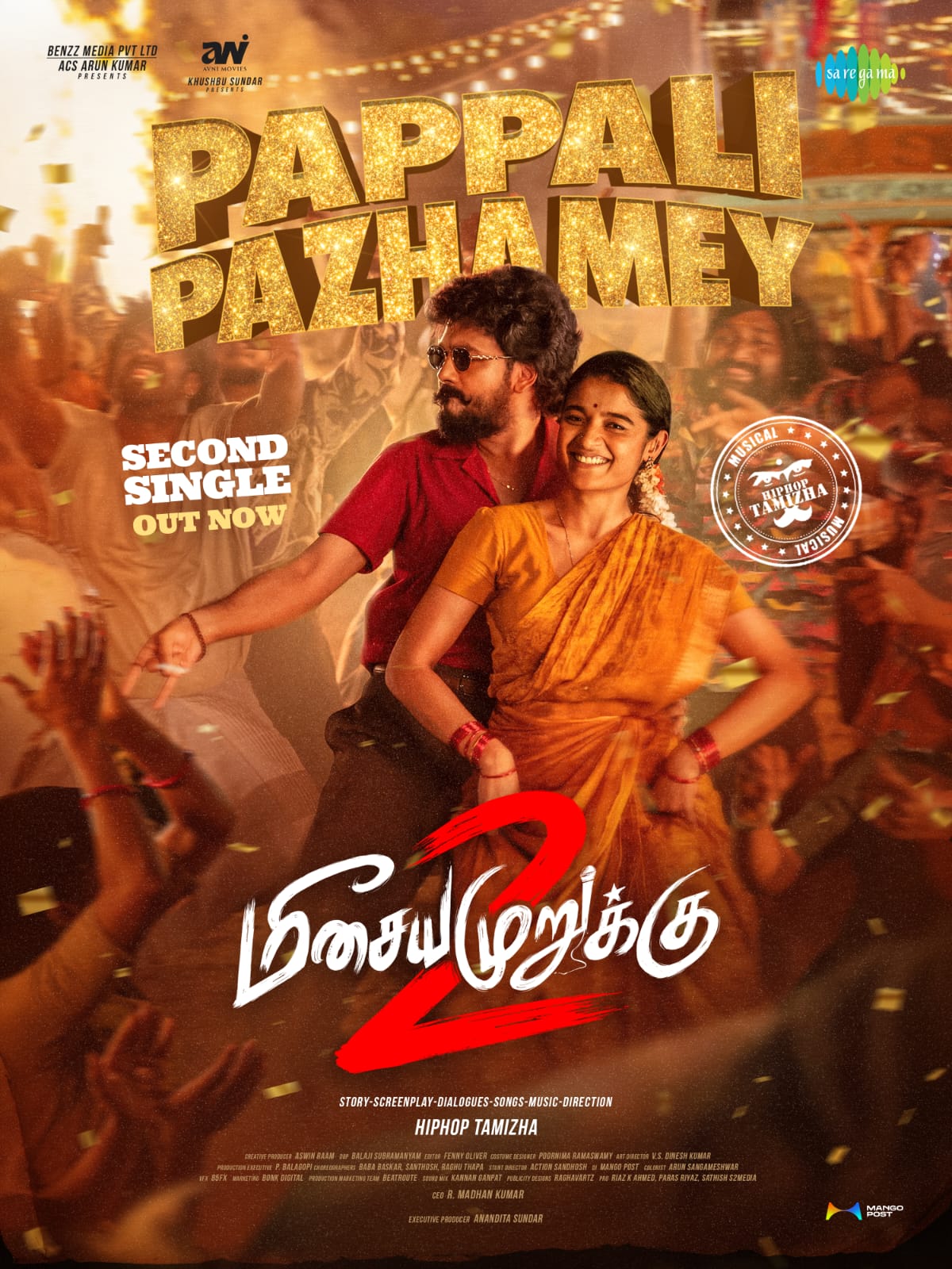 Now, the second single Pappaali Pazhamey was unveiled on Wednesday evening. Sung by Gaana Vinoth, Gaana Dharani, and Hiphop Tamizha, the track features choreography by Baba Baskar. Rendered in a vibrant gaana style, the song is already gaining traction and trending across digital platforms.