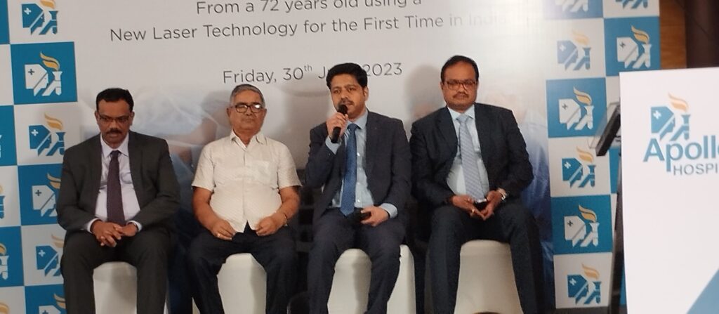 Chennai, 28 June 2023: In an effort to save patients from pacemaker infection and enhance post-Pacemaker ca rdio care, Apollo Hospitals has introduced an innovative Excimer laser technology to remove the infected parts of the pacemaker from patient’s hearts swiftly. Dr. A M Karthigesan, Interventional Cardiologist and Electrophy siologist, Apollo Hospitals, recently performed this cutting-edge extraction procedure on a 72-year-old male pat ient.