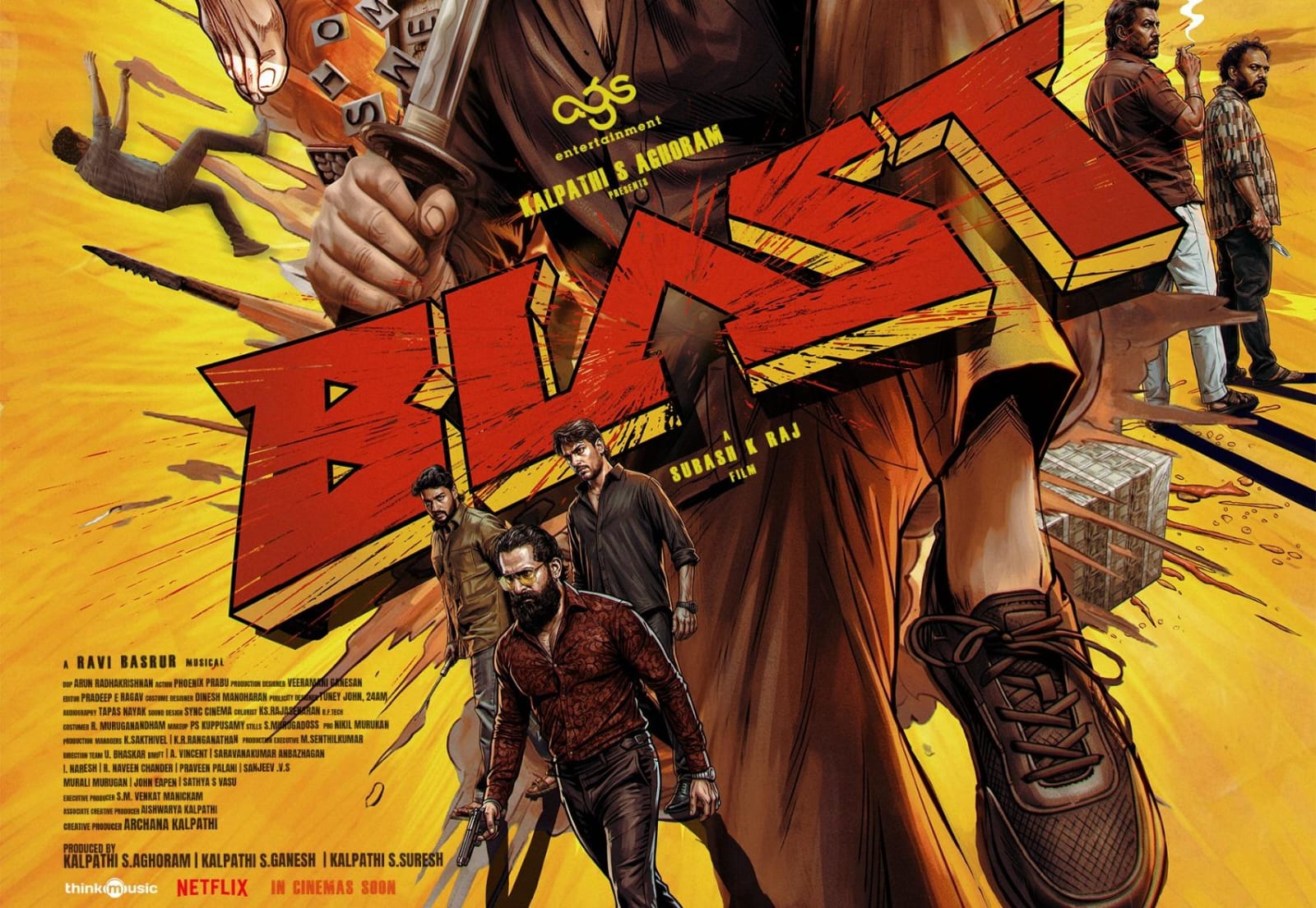 Archana Kalpathi is the Creative Producer of ‘Blast’, while Aishwarya Kalpathi is the Associate Creative Producer. S.M. Venkat Manickam is the executive producer. Vivek Prasanna, John Kokken, Arjun Chidambaram, Pawan, Dileepan, Vinod Sagar and Bala Hasan R have played important roles in the film.