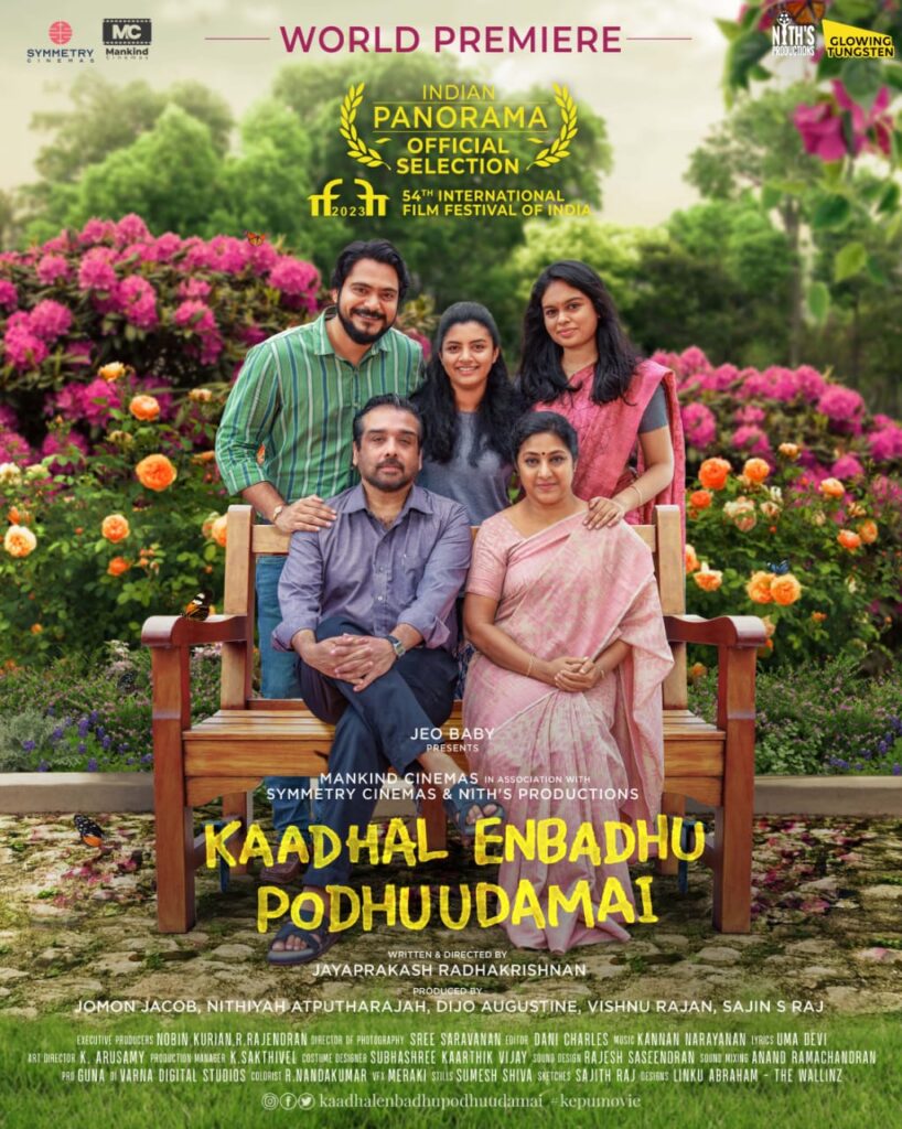 ‘Kadhal Enbadhu Podhu Udami’ is a modern love story written and directed by Jayaprakash Radhakrishnan who is known for Lens, The Mosquito Philosophy and Thalaikoothal. The film features Lijomol, Rohini, Vineeth, Kales h Ramanand, Anusha and Deepa. Director of The Great Indian Kitchen, Jeo Baby presents the film and the film is jointly produced by Mankind Cinemas, Niths Productions and Symmetry Cinemas.