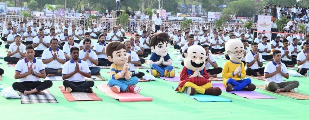 ~ With Vice President of India – Jagdeep Dhankhar, Shri Shivraj Singh Chouhan Honorable Chief Minister, Madhya Pr adesh, and other dignitaries, Nicktoons Motu Patlu, Rudra and Abhimanyu were seen educating kids and 150,000 p eople with the benefits of Yoga~