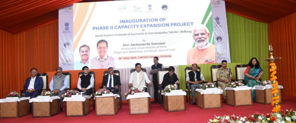 May, 2023: The Union Minister of Ports, Shipping & Waterways and Ayush, Sarbananda Sonowal inaugurated Si x new buildings as part of the Project II of North Eastern Institute of Ayurveda & Homoeopathy (NEIAH) to expa nd capacity. The cost of the construction of these new buildings is estimated at more than ₹60 crores.