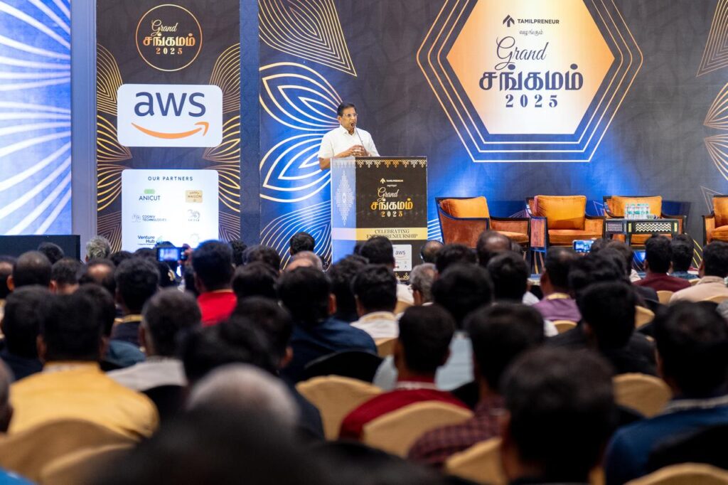 The Tamilpreneur Grand Sangamam 20 25 brought together over 1,000 entrepr eneurs, featuring 50+ high-profile found ders and more than 25 venture capital fi rms, along with angel investors and start up enthusiasts, all converging to celebra te innovation, exchange ideas, and foste r the growth of Tamil entrepreneurship. Notable participants included Sridhar Vembu from Zoho, Prabhu Rangarajan from M2P Fintech, Arun Prakash from GUVI, and Mohan K from IppoPay, as well as representatives from AWS, BCS, and Anicut Capital. The event featured high-impact sessions such as “AI for Entrepreneurs,” “Getting to ₹10 Cr Revenue,” “Scaling to ₹100 Cr,” and a startup “Demo Day,” culminating in a gala dinner and awards night, offering a full-day immersion in strategy, growth, and meaningful networking.