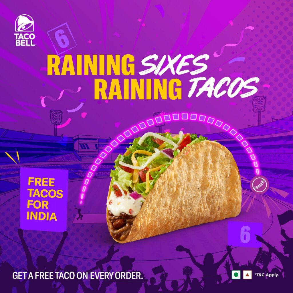 Earlier this month the brand kicked off its nationwide campaign, ‘See A Six, Catch A Taco, which was a great suc cess. The brand collaborated with legendary and veteran cricketer Ravi Shastri, cricket commentator Jatin Sapr u and, member of the India’s cricket family Sanjana Ganesan to share funny and witty tweets where they coach the Indian team to hit more sixes, paving the way for their victory.