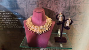 The Regal collection draws its inspiration from 3 key pillars of the dynasty. The magnificent temple architecture which are embellished with stone sculptures and wall paintings showcasing the artistic prowess, cultural depth & unforgettable legacy of The Cholas. The Sangam poetry and literature denoting the ‘verses of the wise’; impact of which can be felt even today in Tamil literature. The Chola bronzes in the form of the symbolic coinage & scul ptures with ornamentations epitomises grace, elegance and etherealism with divine mudras pulsating life into t he sculpture. These have also been inspired by the indomitable women of the Chola dynasty who displayed cha racteristics of wit, valour & benevolence, just like the Pudhumai Penn of today.