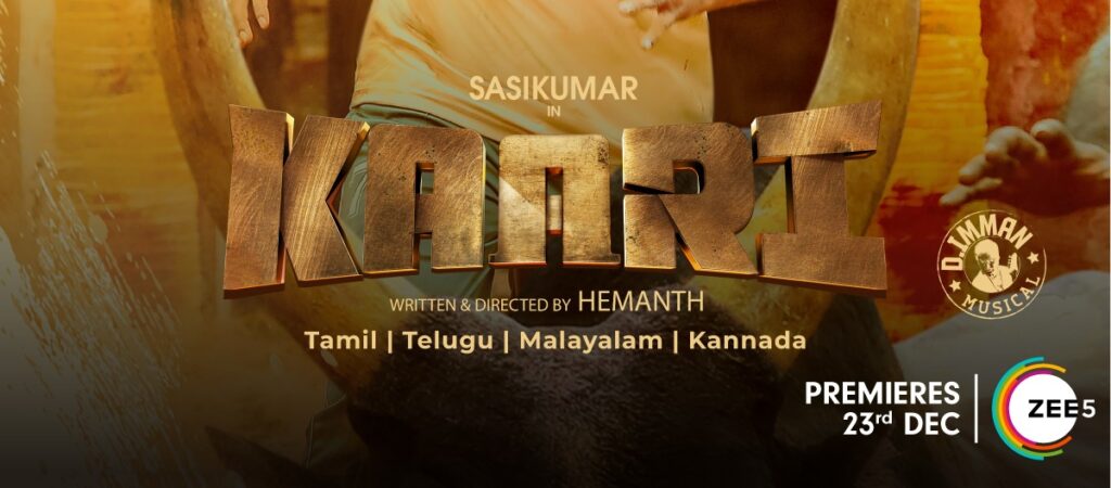 Producer – S. Lakshman Kumar adds, “A movie for audiences from all walks of life. A narrative that has racy stunt s, and action sequences that roller coaster through high emotions, pain, love, betrayal, and sacrifice- Kaari has it all. With an ensemble of your favourite star cast, Kaari is packed with elements of live action Jallikattu, corporat e avarice and our unabated love for animals. I am glad it’s going to stream soon on ZEE5 so a larger audience can enjoy our pride”